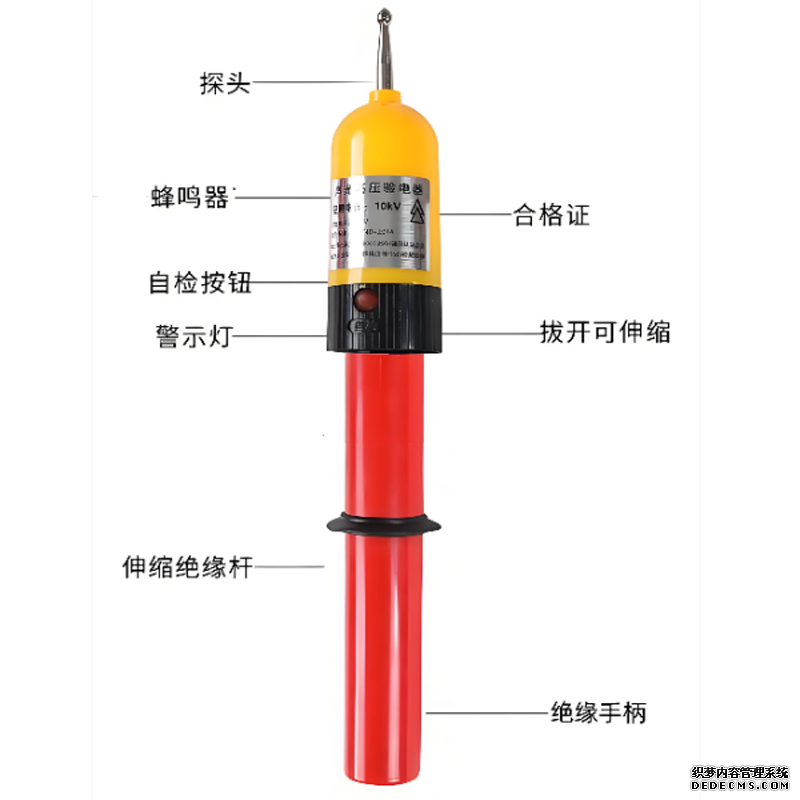 感应交声光验电器使用前应根据被除数测线路调和的额定电压选用合适瑾的指示器和操作杆。验电操作前应对指示器进行自检实验,才能将指示器旋转固定在操作杆(绝缘杆)上,并将绝缘杆拉伸至规定长度,(以节数顺序编号全部依次露出为准)再作一次自栓后才能进行验电操作。